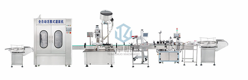 人工把瓶放到送瓶轉(zhuǎn)盤上-自動灌裝-自動理蓋下蓋-自動鎖蓋-自動打碼-自動貼標-人工收瓶