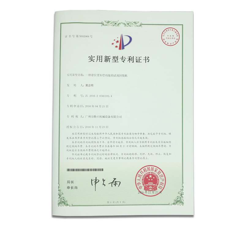 騰卓機(jī)械專利生產(chǎn)證書,專業(yè)制造包裝設(shè)備的生產(chǎn)廠家,全自動(dòng)及半自動(dòng)的洗瓶機(jī),烘干機(jī),灌裝機(jī),旋蓋機(jī),貼標(biāo)機(jī),套標(biāo)機(jī),打碼機(jī)等非標(biāo)定制自動(dòng)化包裝生產(chǎn)線