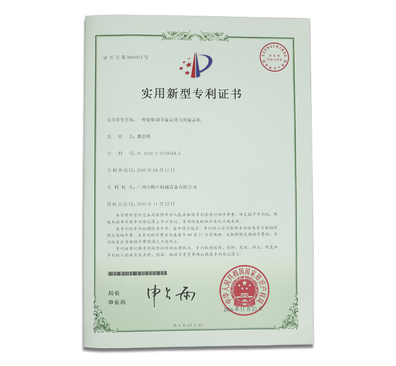 騰卓機械專利生產(chǎn)證書,專業(yè)制造包裝設(shè)備的生產(chǎn)廠家,全自動及半自動的洗瓶機,烘干機,灌裝機,旋蓋機,貼標(biāo)機,套標(biāo)機,打碼機等非標(biāo)定制自動化包裝生產(chǎn)線