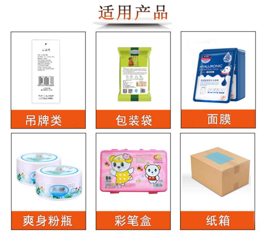 適用于在市面上各種方盒或扁平物表面進(jìn)行貼標(biāo)簽或防偽標(biāo)簽、以及瓶子一組收縮后貼標(biāo)